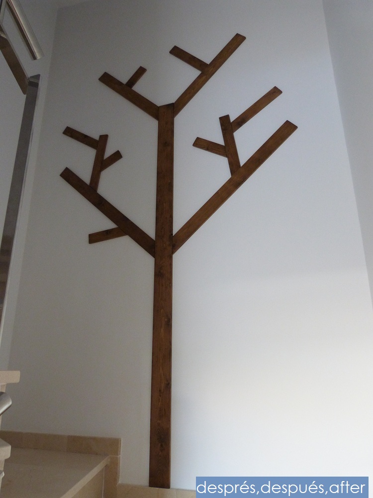 Amb l'ajuda de l'Albert que em va tallar les fustes amb la serra i les va encolar a la paret, he aconseguit crear aquest bonic arbre. Canviar l'ambient de casa és ben fàcil tenint com aliada la imaginació. Ara només em queda decorar-lo amb ocellets fets amb patchwork.